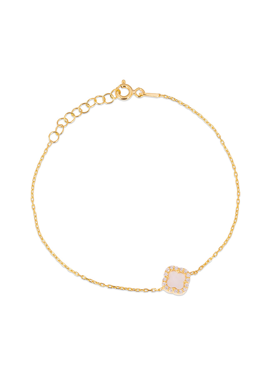 A stunning yet delicate clover bracelet. The clover measures approx 0.8mm.