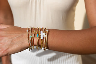 Colours of the Ligurian sea , blue white green and everything in between. Lots of bracelets, pearls and necklaces.